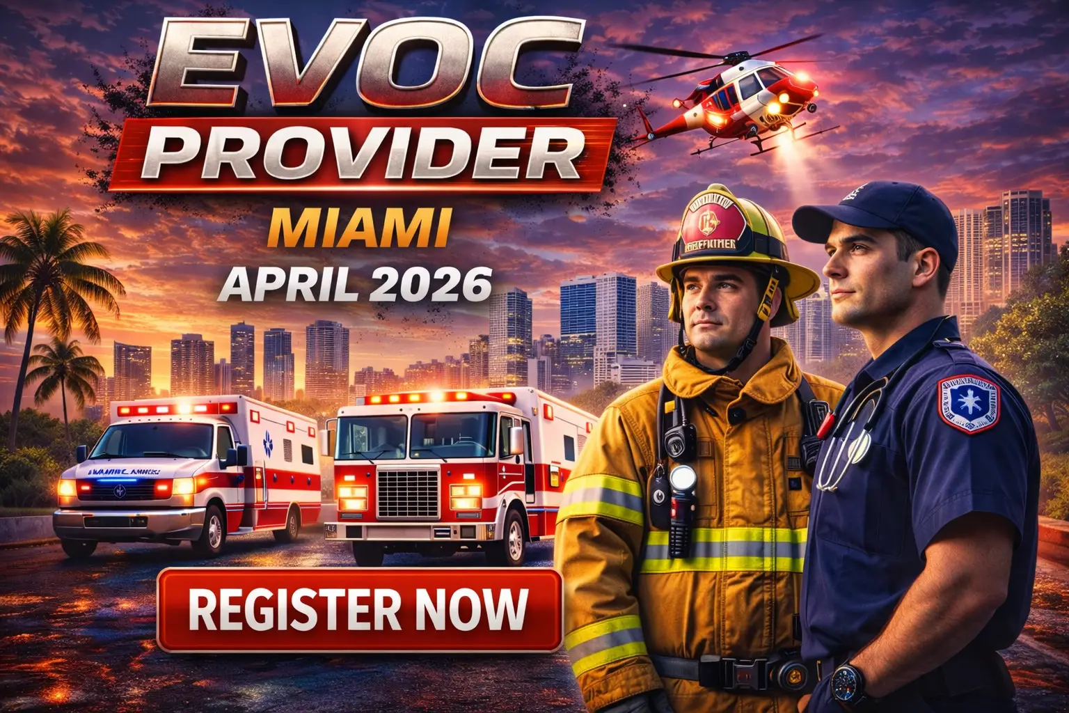 The EVOC Provider Course is a comprehensive 16-hour Emergency Vehicle Operator Course designed for firefighters, EMTs, and paramedics. This training meets Florida requirements for EVOC certification and prepares Fire and EMS personnel to safely operate ambulances and fire apparatus during emergency and non-emergency responses. EVOC Certification for Florida EMTs and Paramedics!